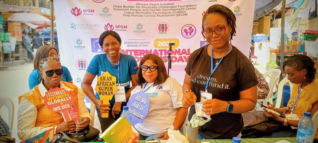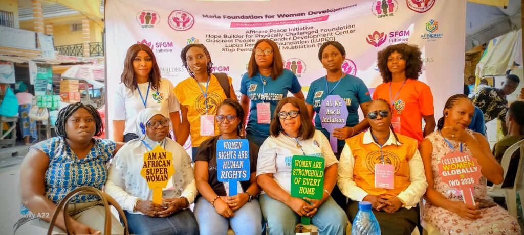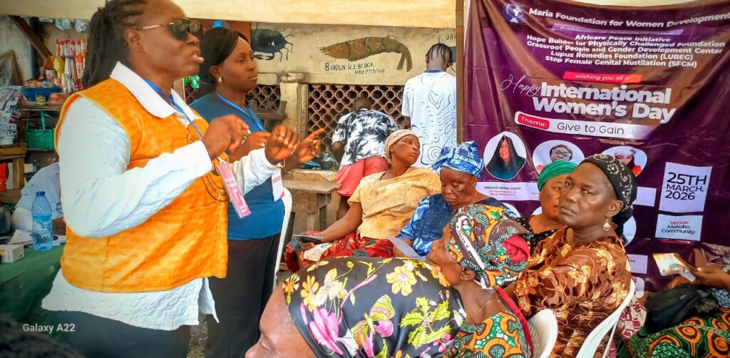 In celebration of International Women’s Day 2026, six organizations came together on Wednesday, March 25, 2026, for a special outreach programme at Betterlife Market, Makoko community. The event, themed “Empowering Women, Empowering Health,” was organized by Maria Foundation for Women Development in collaboration with Hope Builders for Physically Challenged Foundation, Lupus Remedies Foundation, Africare Peace Initiative, Grassroot People and Gender Development Centre, and Stop Female Genital Mutilation.